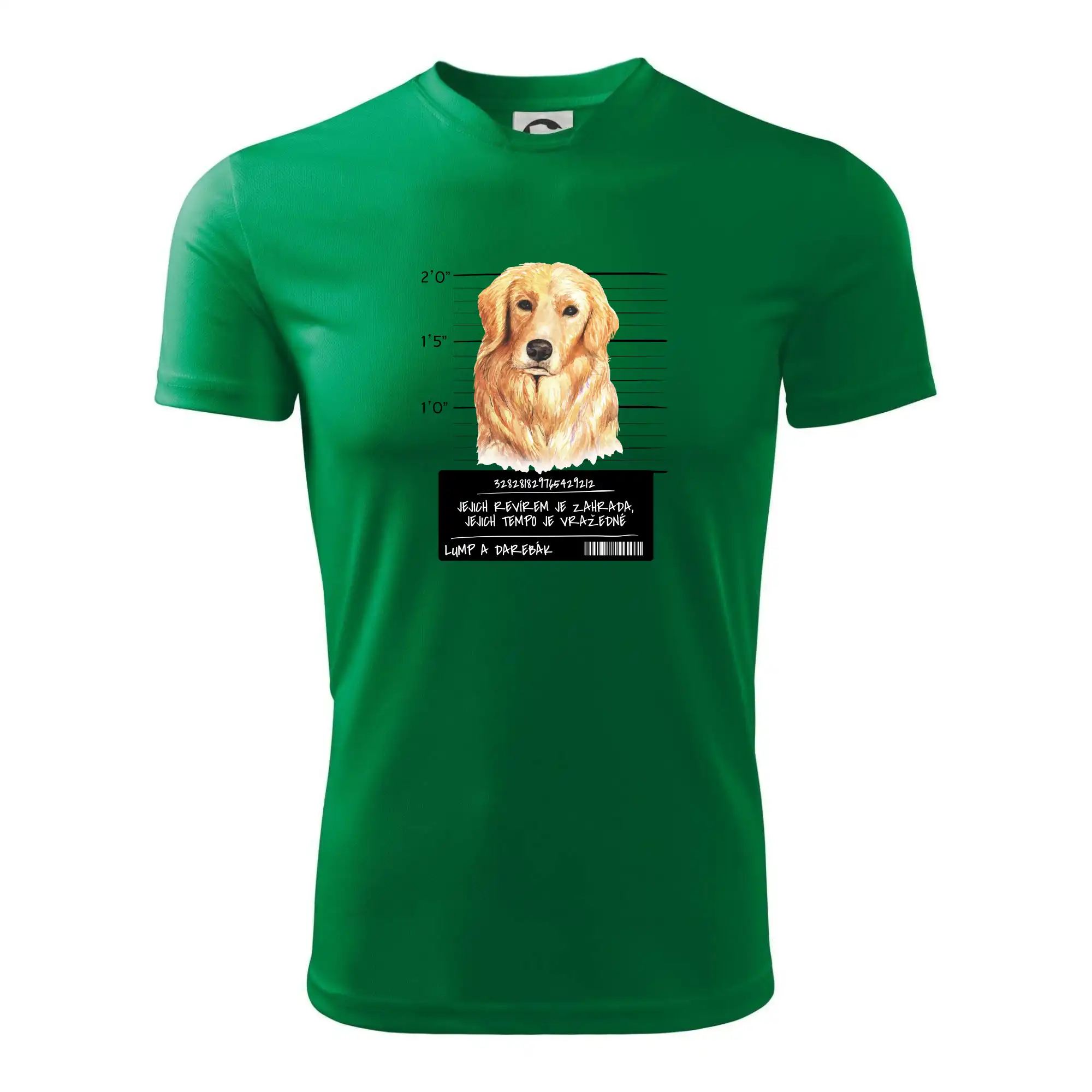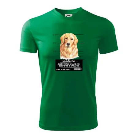 Triko pro pejskaře s nápisem "Jejich revírem je zahrada, jejich tempo je vražedné, lump a darebák". Triko, na kterém je pes zlatý retrívr, by měl doma mít každý správný pejskař. Triko se psem je vhodný dárek pro pejskaře.
