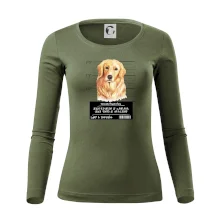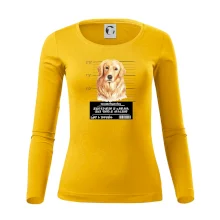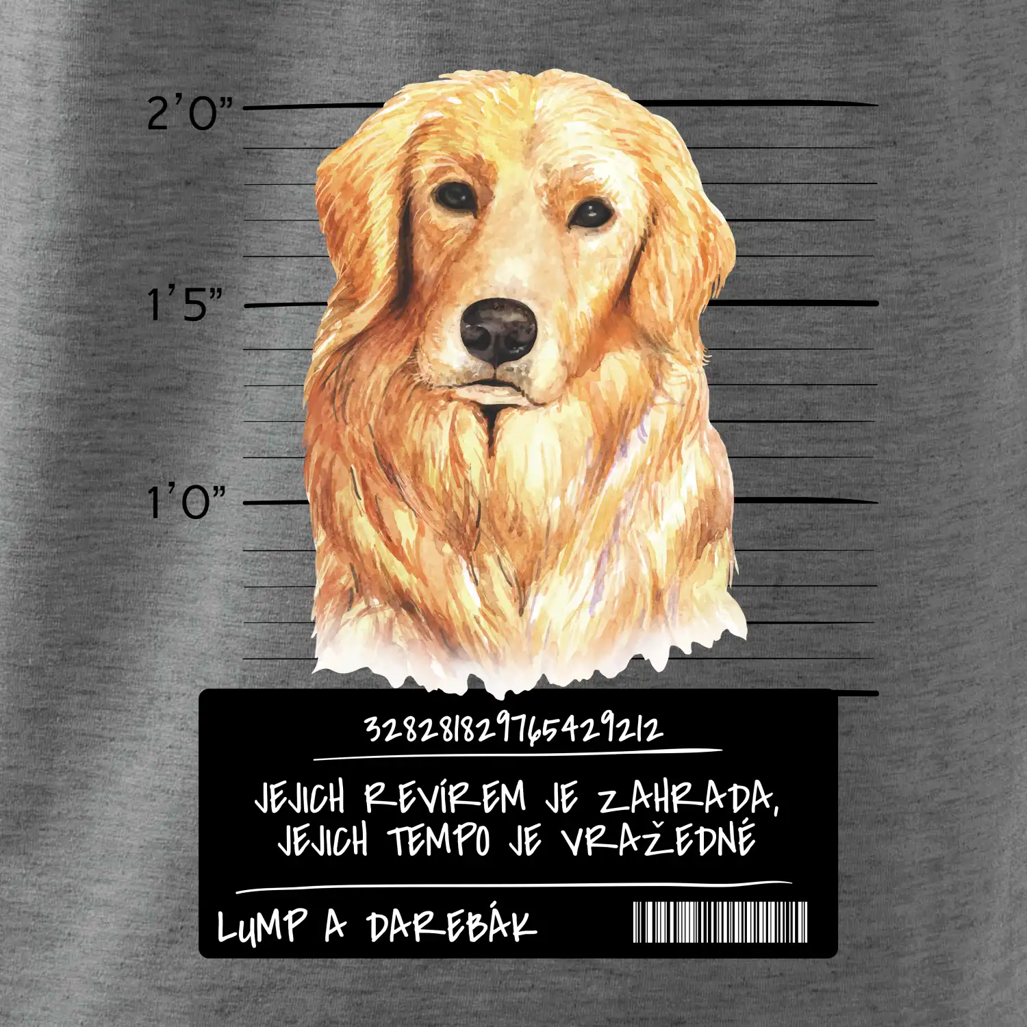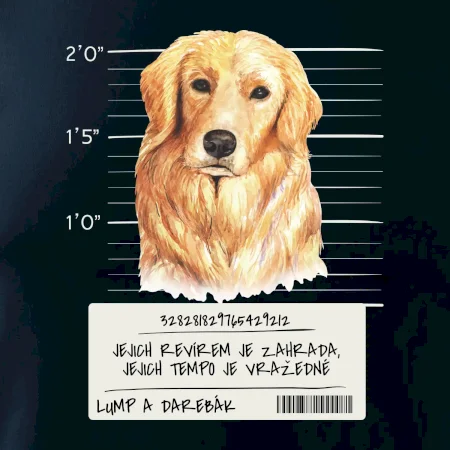 Triko pro pejskaře s nápisem "Jejich revírem je zahrada, jejich tempo je vražedné, lump a darebák". Triko, na kterém je pes zlatý retrívr, by měl doma mít každý správný pejskař. Triko se psem je vhodný dárek pro pejskaře.