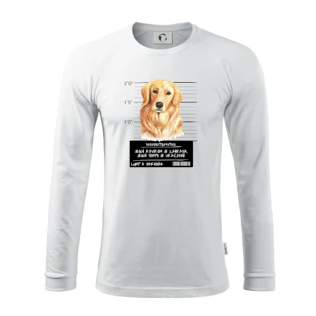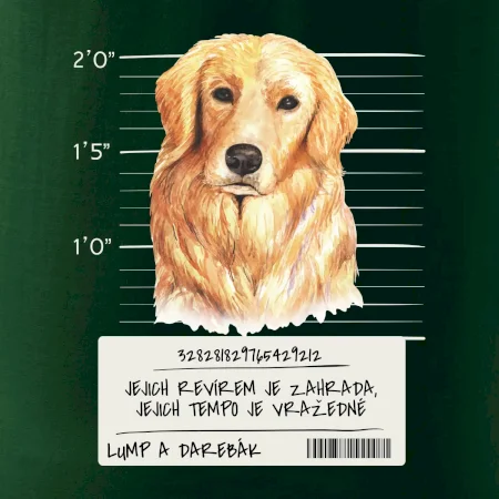 Triko pro pejskaře s nápisem "Jejich revírem je zahrada, jejich tempo je vražedné, lump a darebák". Triko, na kterém je pes zlatý retrívr, by měl doma mít každý správný pejskař. Triko se psem je vhodný dárek pro pejskaře.