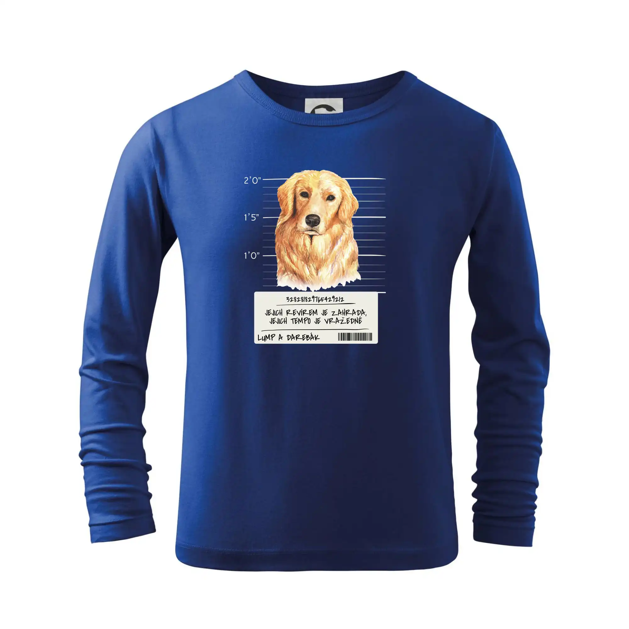 Triko pro pejskaře s nápisem "Jejich revírem je zahrada, jejich tempo je vražedné, lump a darebák". Triko, na kterém je pes zlatý retrívr, by měl doma mít každý správný pejskař. Triko se psem je vhodný dárek pro pejskaře.
