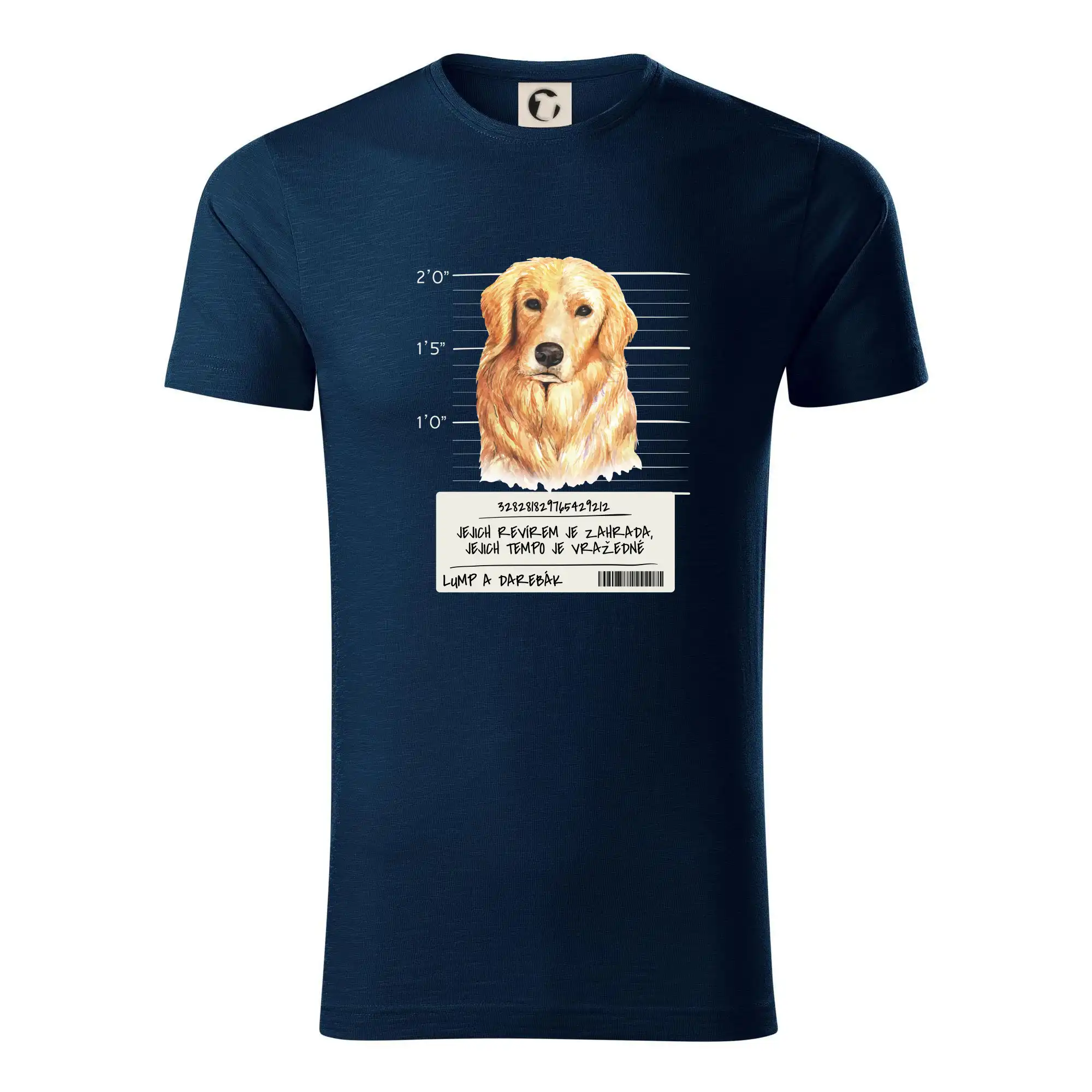 Triko pro pejskaře s nápisem "Jejich revírem je zahrada, jejich tempo je vražedné, lump a darebák". Triko, na kterém je pes zlatý retrívr, by měl doma mít každý správný pejskař. Triko se psem je vhodný dárek pro pejskaře.