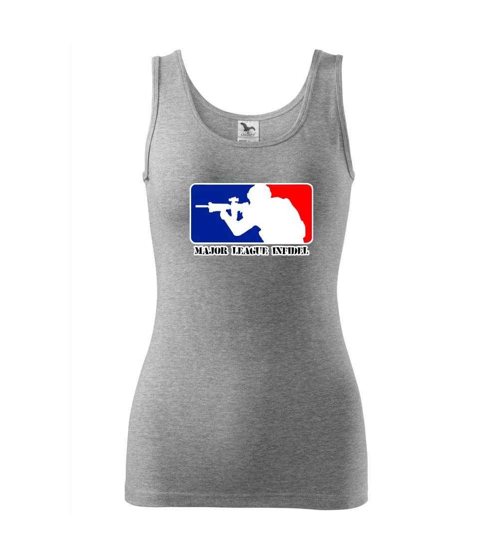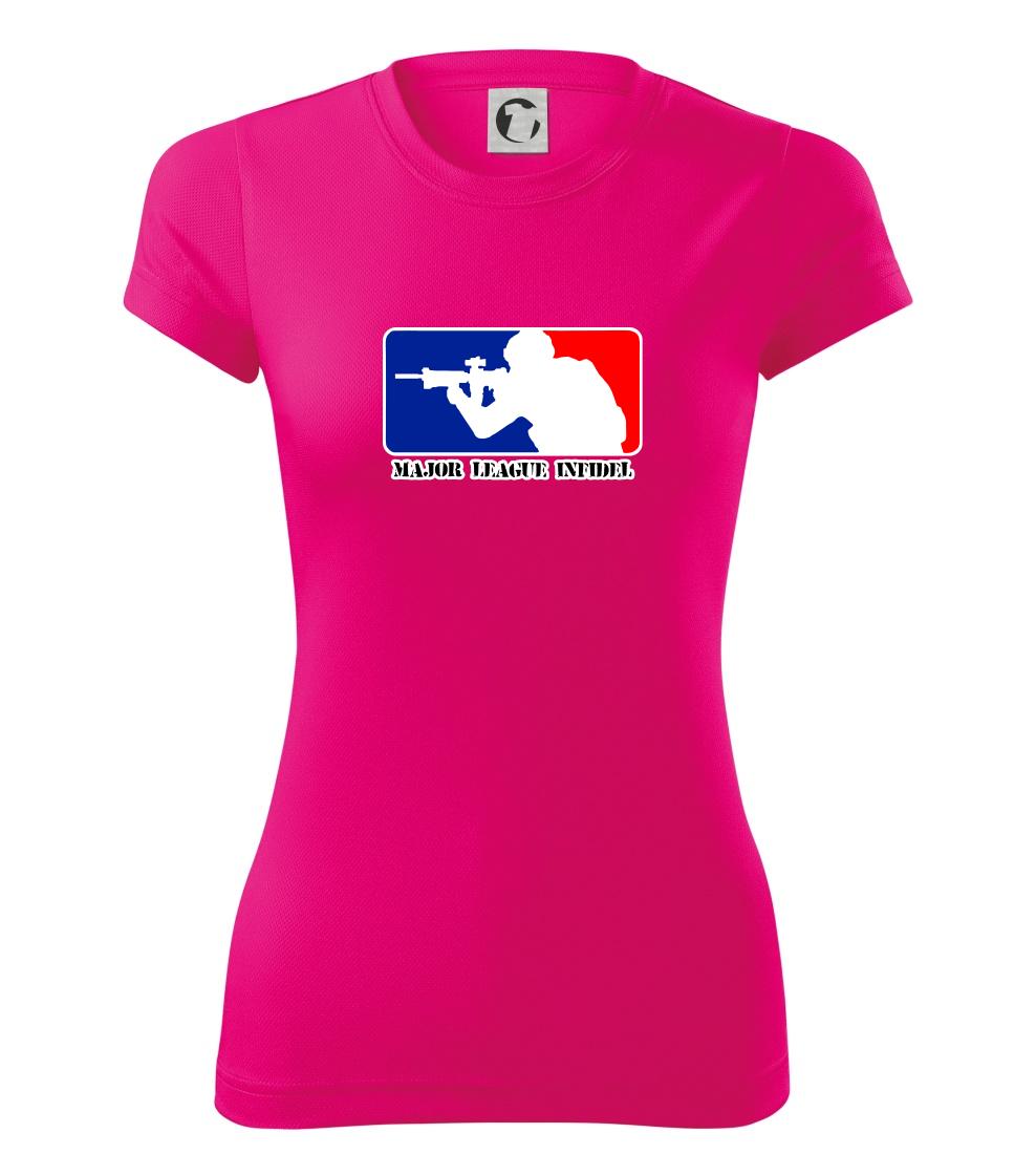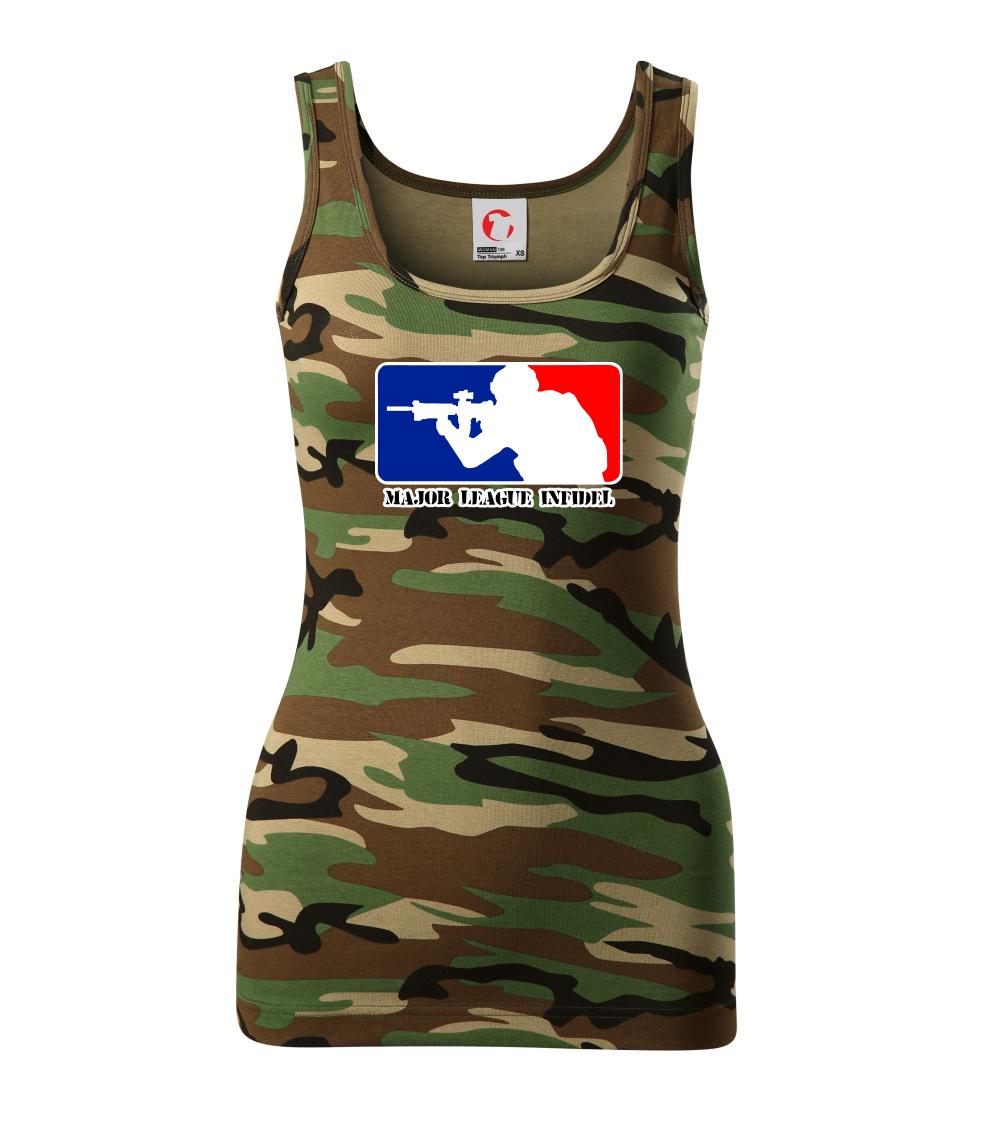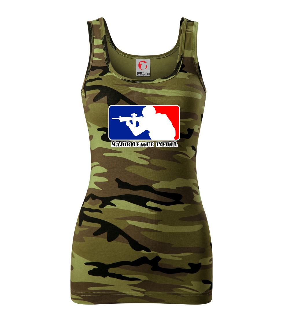 Vojenské triko s armádní tématikou, na kterém je nápis "Major league infidel" a silueta vojáka. Pokud jsi fanoušek US army, pak je pro tebe tohle triko jak dělané! Triko pro všechny, kteří mají zálibu v armádě a vojenství. Dárek pro vojáka.