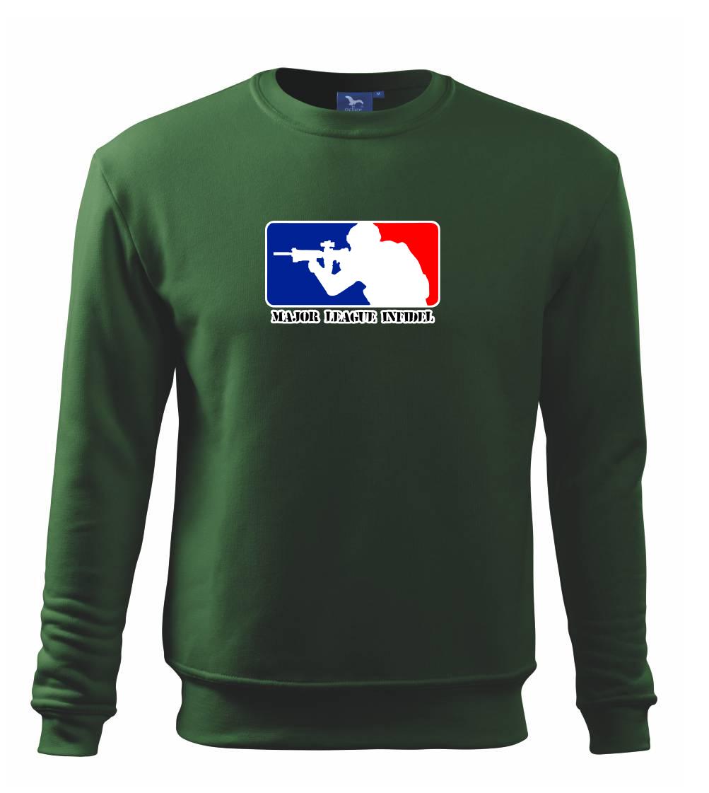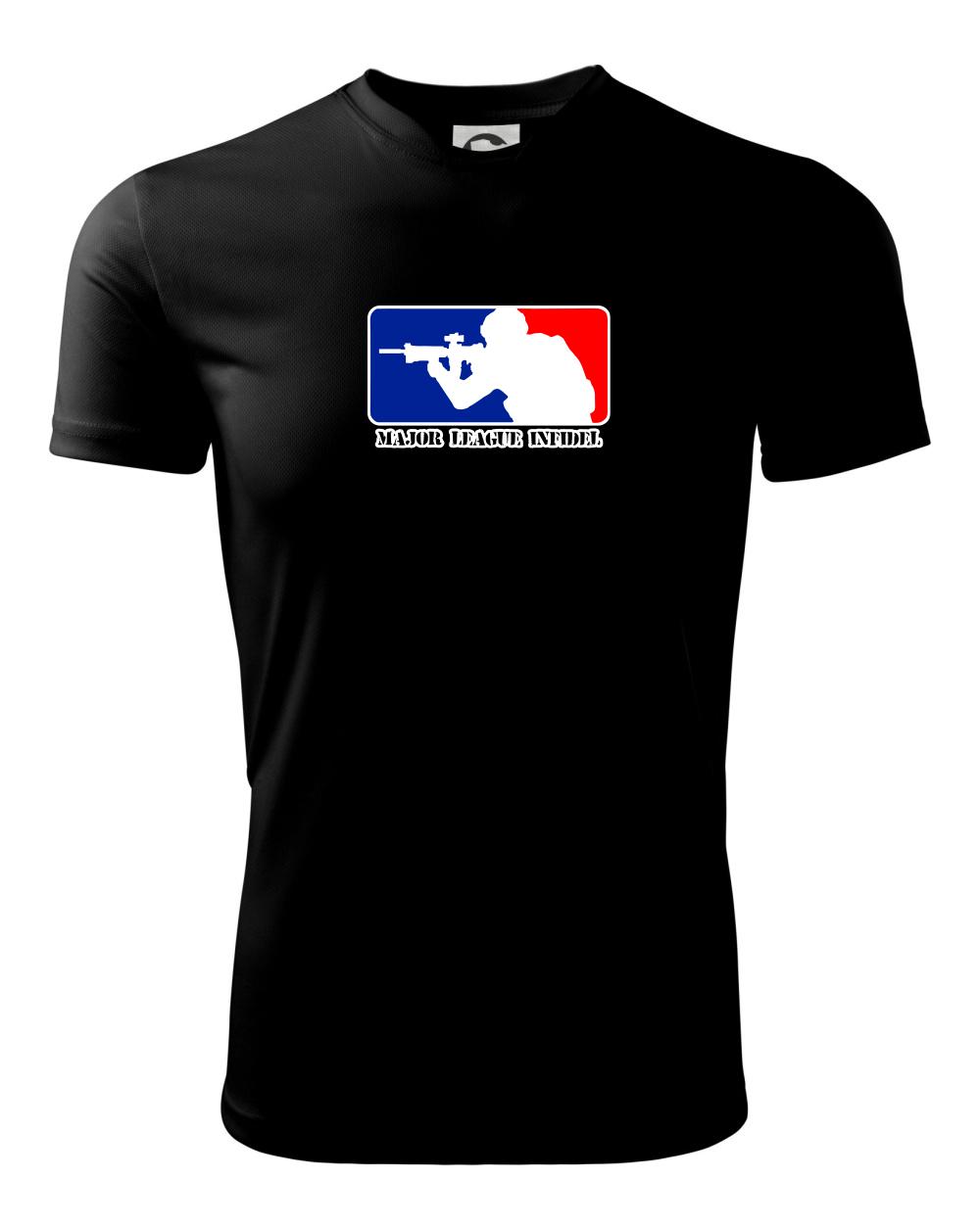 Vojenské triko s armádní tématikou, na kterém je nápis "Major league infidel" a silueta vojáka. Pokud jsi fanoušek US army, pak je pro tebe tohle triko jak dělané! Triko pro všechny, kteří mají zálibu v armádě a vojenství. Dárek pro vojáka.