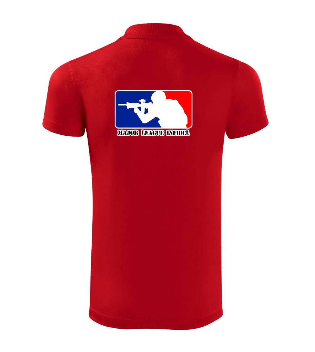 Vojenské triko s armádní tématikou, na kterém je nápis "Major league infidel" a silueta vojáka. Pokud jsi fanoušek US army, pak je pro tebe tohle triko jak dělané! Triko pro všechny, kteří mají zálibu v armádě a vojenství. Dárek pro vojáka.