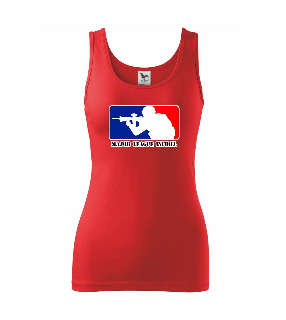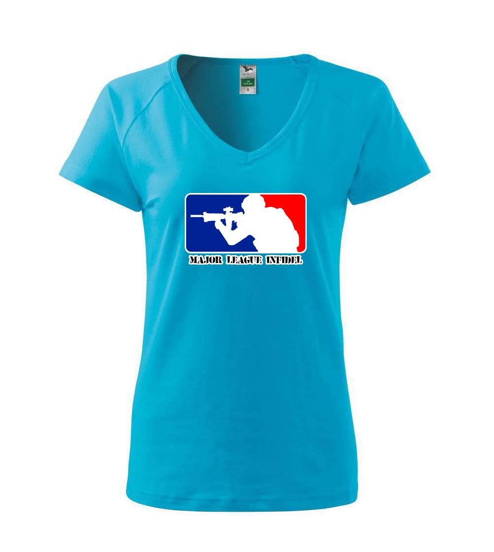 Vojenské triko s armádní tématikou, na kterém je nápis "Major league infidel" a silueta vojáka. Pokud jsi fanoušek US army, pak je pro tebe tohle triko jak dělané! Triko pro všechny, kteří mají zálibu v armádě a vojenství. Dárek pro vojáka.
