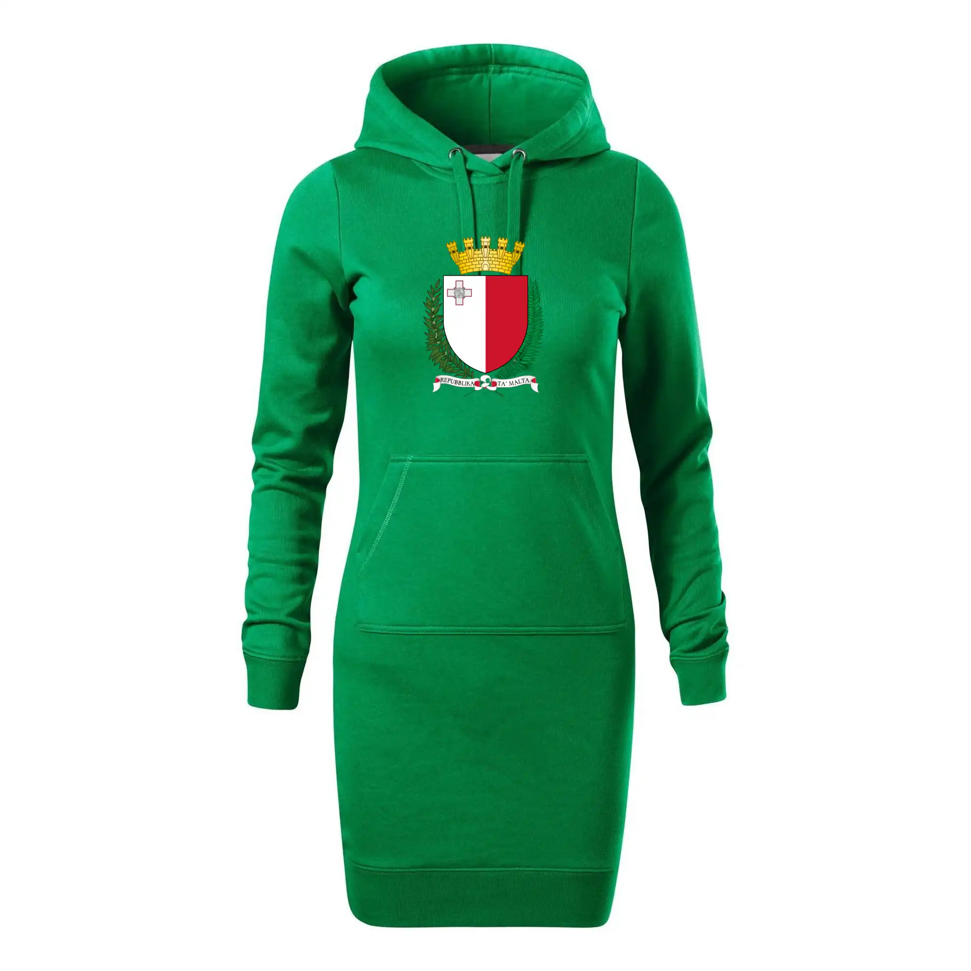 Dámské mikinové šaty MALFINI Snap 419 jsou ideální volbou pro ženy, které hledají pohodlný a stylový kousek pro volný čas nebo každodenní nošení. Lehce vypasovaný střih s bočními švy podtrhuje ženskou siluetu, zatímco kapuce s podšívkou a stahovací šňůrkou dodává ležérní vzhled. Šaty mají délku nad kolena a jsou vybaveny nakládanou kapsou ve stylu „klokanky“. Materiál je měkký a příjemný na dotek díky směsi bavlny a polyesteru s nepočesanou vnitřní stranou.