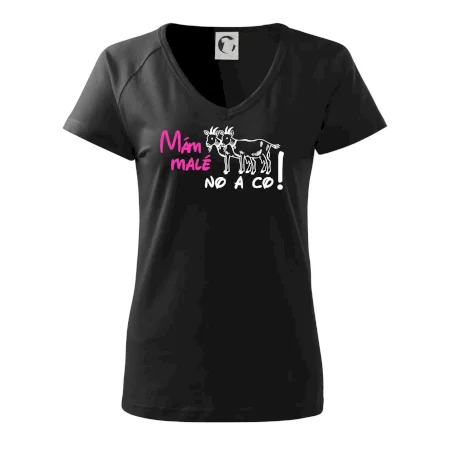 Vtipné triko pro odvážné holky co se nestydí za svoje kozičky! Vtipný dárek pro holku, která má malá prsa. Triko s nápisem "Mám malé kozy, no a co!".