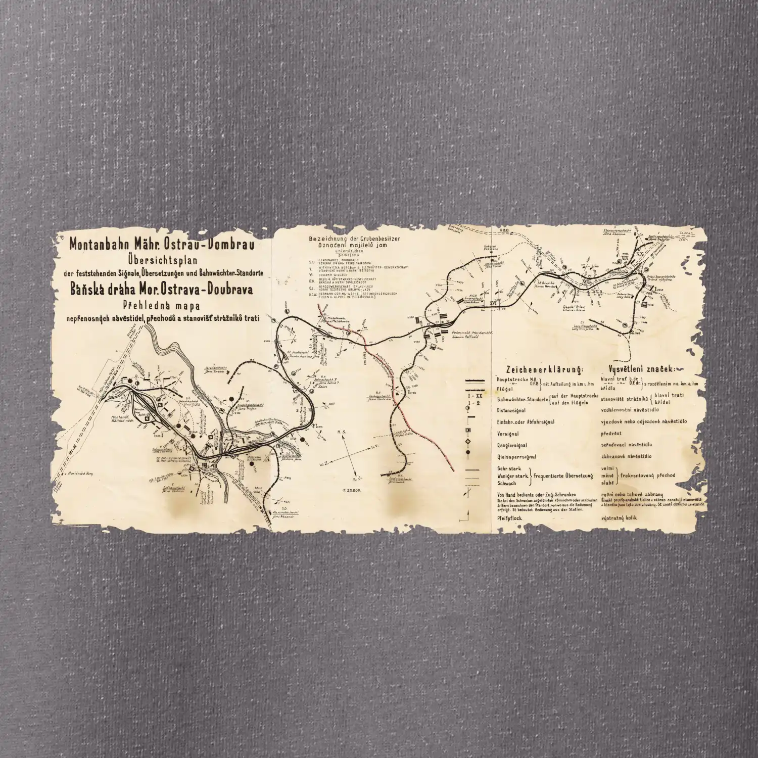 Mapa Báňské dráhy z Moravské Ostravy do Doubravy