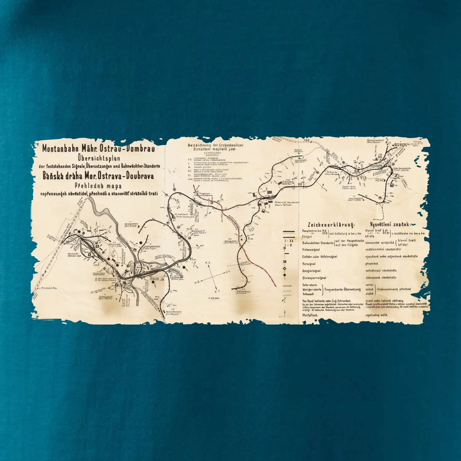 Mapa Báňské dráhy z Moravské Ostravy do Doubravy