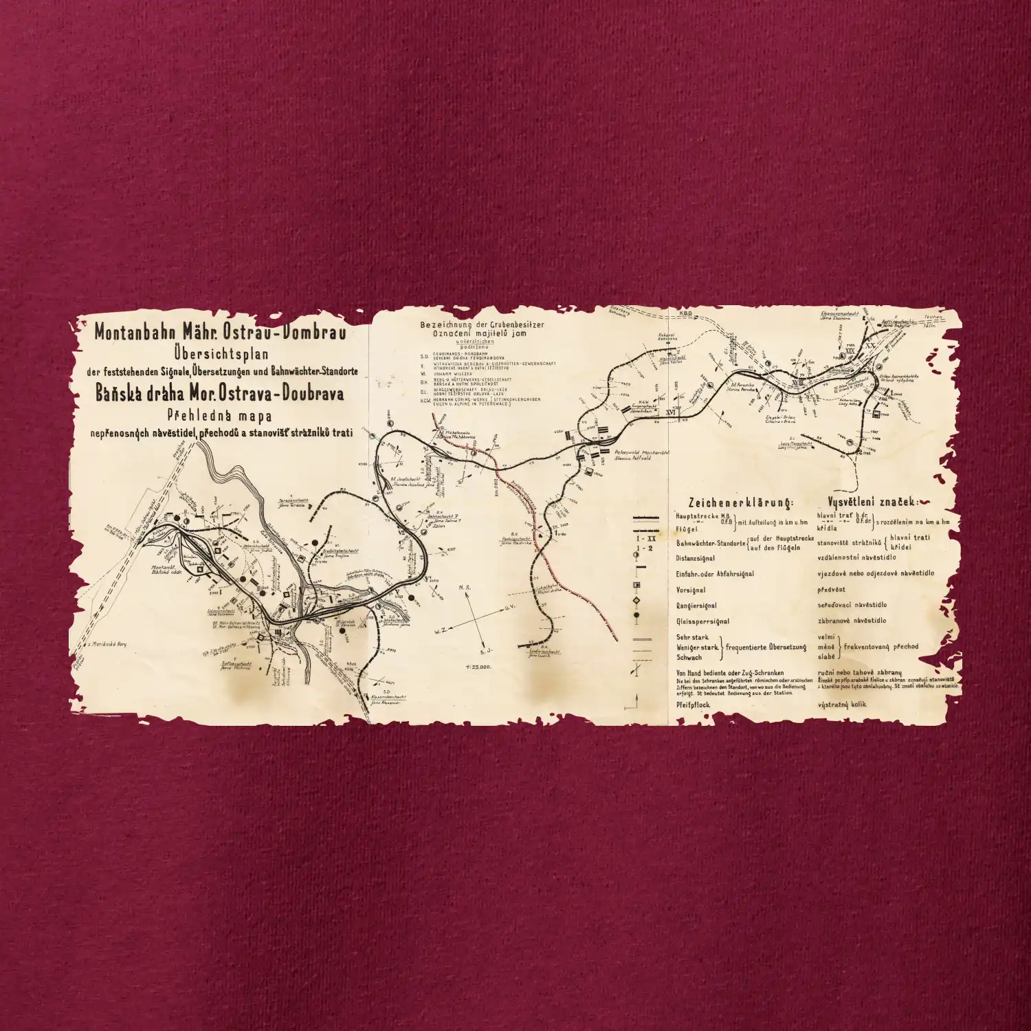 Mapa Báňské dráhy z Moravské Ostravy do Doubravy