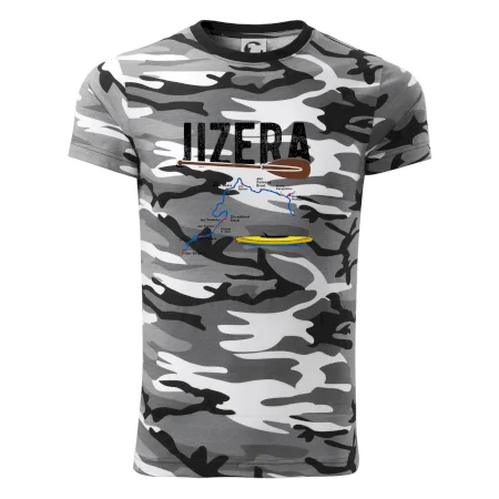 Tričko střední gramáže v barvách camouflage. Střih s bočními švy. Lem průkrčníku ze žebrového úpletu s přídavkem 5 % elastanu. Vnitřní část zadního průkrčníku začištěna páskou v barvě camouflage.