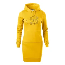 Dámské mikinové šaty MALFINI Snap 419 jsou ideální volbou pro ženy, které hledají pohodlný a stylový kousek pro volný čas nebo každodenní nošení. Lehce vypasovaný střih s bočními švy podtrhuje ženskou siluetu, zatímco kapuce s podšívkou a stahovací šňůrkou dodává ležérní vzhled. Šaty mají délku nad kolena a jsou vybaveny nakládanou kapsou ve stylu „klokanky“. Materiál je měkký a příjemný na dotek díky směsi bavlny a polyesteru s nepočesanou vnitřní stranou.