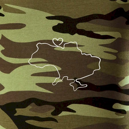 Tričko střední gramáže v barvách camouflage. Střih s bočními švy. Lem průkrčníku ze žebrového úpletu s přídavkem 5 % elastanu. Vnitřní část zadního průkrčníku začištěna páskou v barvě camouflage.