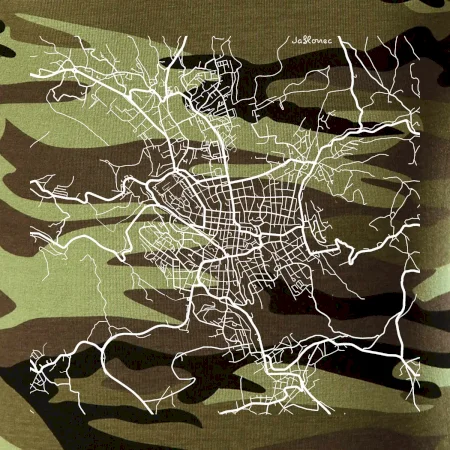 Tričko střední gramáže v barvách camouflage. Střih s bočními švy. Lem průkrčníku ze žebrového úpletu s přídavkem 5 % elastanu. Vnitřní část zadního průkrčníku začištěna páskou v barvě camouflage.