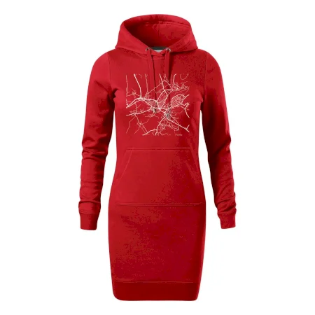 Dámské mikinové šaty MALFINI Snap 419 jsou ideální volbou pro ženy, které hledají pohodlný a stylový kousek pro volný čas nebo každodenní nošení. Lehce vypasovaný střih s bočními švy podtrhuje ženskou siluetu, zatímco kapuce s podšívkou a stahovací šňůrkou dodává ležérní vzhled. Šaty mají délku nad kolena a jsou vybaveny nakládanou kapsou ve stylu „klokanky“. Materiál je měkký a příjemný na dotek díky směsi bavlny a polyesteru s nepočesanou vnitřní stranou.