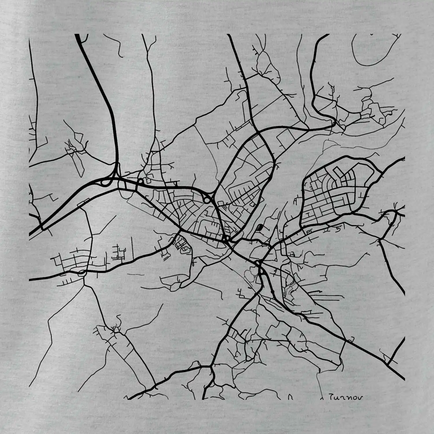 Mapy měst černobílé Turnov