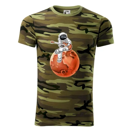 Tričko střední gramáže v barvách camouflage. Střih s bočními švy. Lem průkrčníku ze žebrového úpletu s přídavkem 5 % elastanu. Vnitřní část zadního průkrčníku začištěna páskou v barvě camouflage.