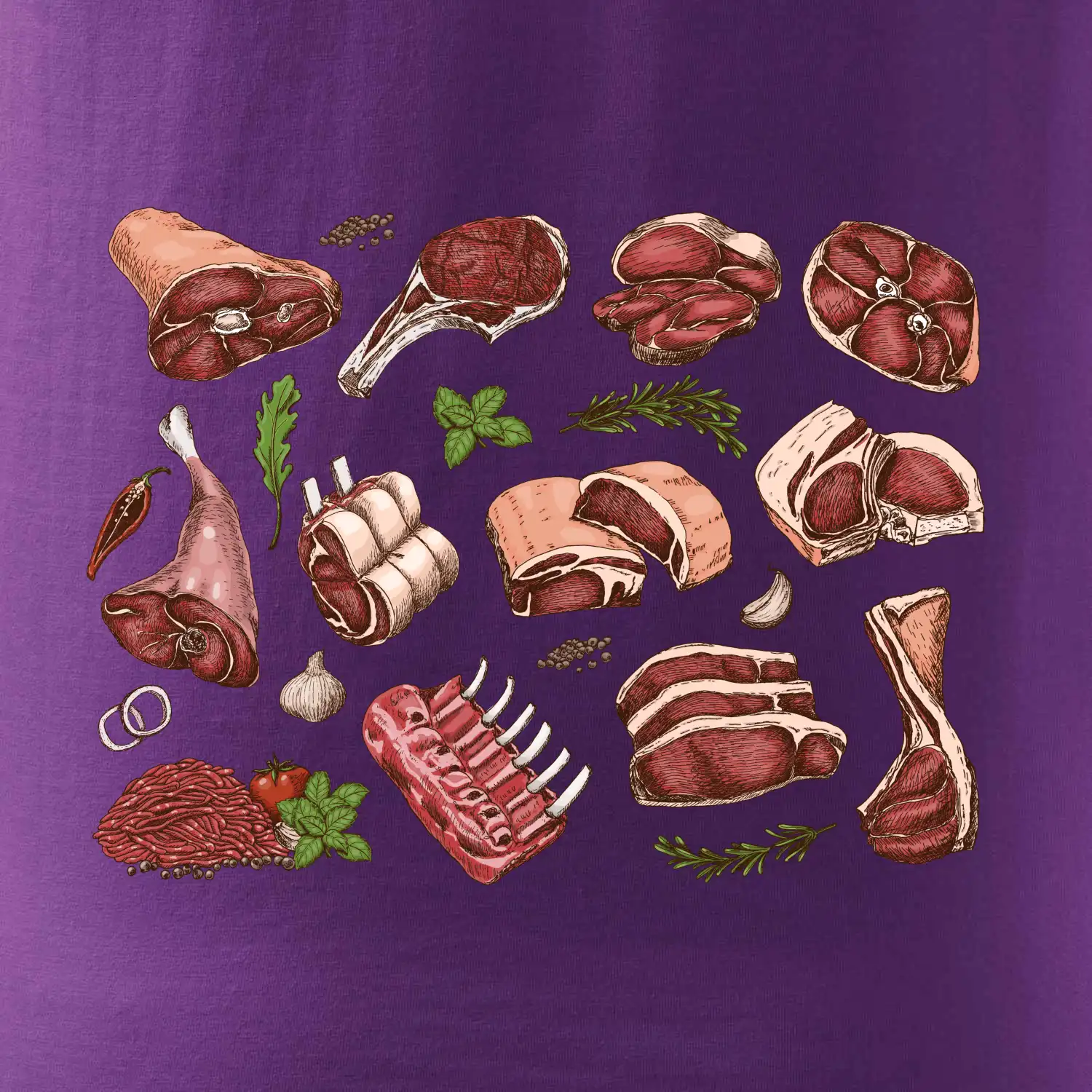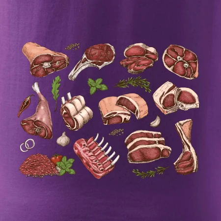 Triko, které je plné masa, by si měl pořídit každý kuchař. Na triku najdeš žebírka, kýtu i mleté maso. Triko pro kuchaře musí mít každý správný šéfkuchař i kuchtík. Vhodný dárek pro kuchaře, který má rád jídlo, hlavně maso.