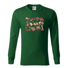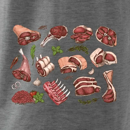 Triko, které je plné masa, by si měl pořídit každý kuchař. Na triku najdeš žebírka, kýtu i mleté maso. Triko pro kuchaře musí mít každý správný šéfkuchař i kuchtík. Vhodný dárek pro kuchaře, který má rád jídlo, hlavně maso.