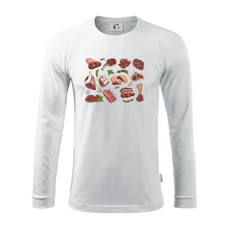 Triko, které je plné masa, by si měl pořídit každý kuchař. Na triku najdeš žebírka, kýtu i mleté maso. Triko pro kuchaře musí mít každý správný šéfkuchař i kuchtík. Vhodný dárek pro kuchaře, který má rád jídlo, hlavně maso.