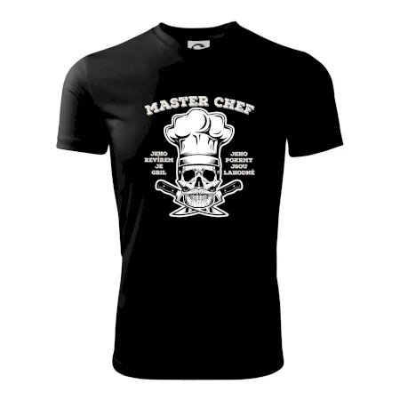 Triko pro kuchaře, na kterém je kuchař kostlivec a nápis "Jeho revírem je gril, jeho pokrmy jsou lahodné", by si měl pořídit každý kuchař, který je mistr grilování. Triko pro kuchaře musí mít každý správný šéfkuchař i kuchtík. Vhodný dárek pro kuchaře, který má rád jídlo a gril, lebka ukáže, že jsi kuchař až na kost.