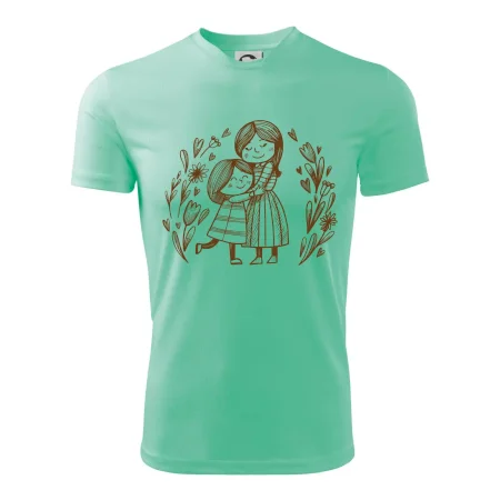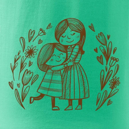 Triko pro maminku, na kterém je maminka a dcera v objetí. Na motivu dívka objímá matku, v okolí jsou rozkvetlé květiny. Mateřská láska se dá vyjádřit i trikem. Motiv který udělá vaší mamince velkou radost. Ukažte, že je pro vás rodina důležitá.