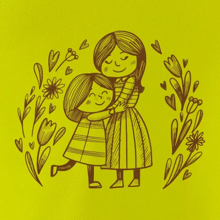Triko pro maminku, na kterém je maminka a dcera v objetí. Na motivu dívka objímá matku, v okolí jsou rozkvetlé květiny. Mateřská láska se dá vyjádřit i trikem. Motiv který udělá vaší mamince velkou radost. Ukažte, že je pro vás rodina důležitá.