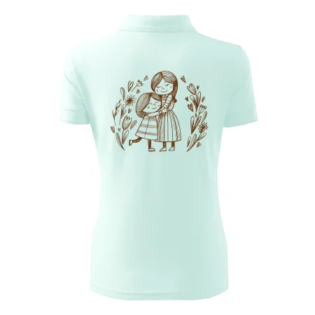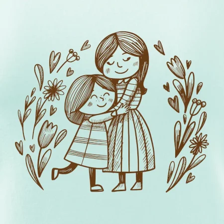 Triko pro maminku, na kterém je maminka a dcera v objetí. Na motivu dívka objímá matku, v okolí jsou rozkvetlé květiny. Mateřská láska se dá vyjádřit i trikem. Motiv který udělá vaší mamince velkou radost. Ukažte, že je pro vás rodina důležitá.