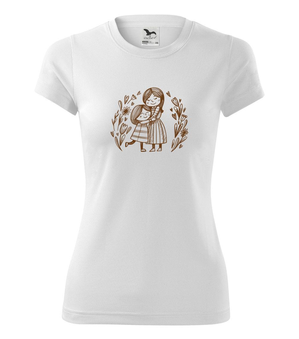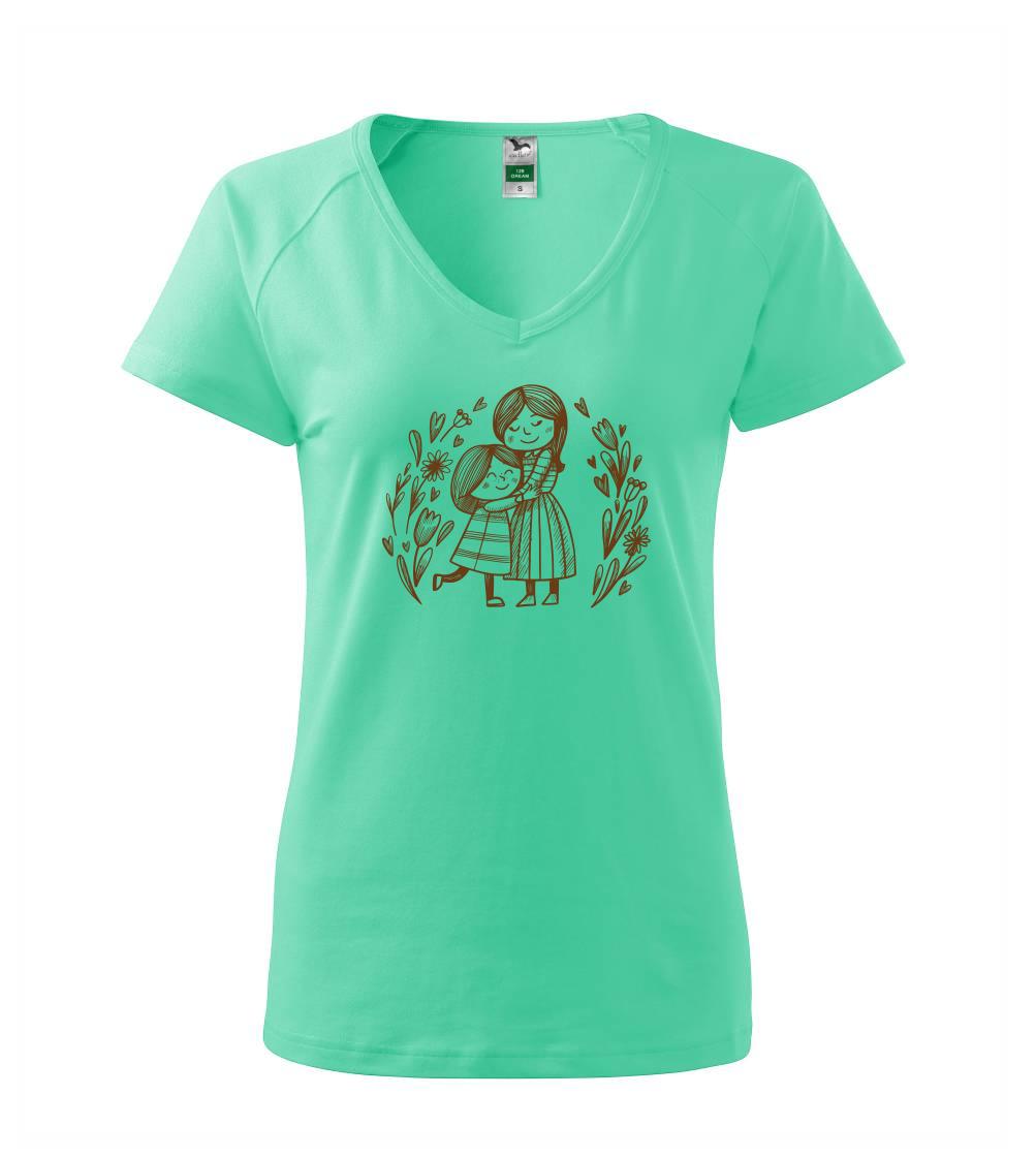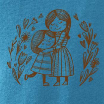 Triko pro maminku, na kterém je maminka a dcera v objetí. Na motivu dívka objímá matku, v okolí jsou rozkvetlé květiny. Mateřská láska se dá vyjádřit i trikem. Motiv který udělá vaší mamince velkou radost. Ukažte, že je pro vás rodina důležitá.