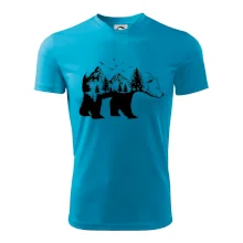 Triko s medvědem je vhodné pro všechny milovníky zvířat a přírody. Hlavní motiv je zvíře - medvěd. Hory a stromy na triku také nechybí, je to přeci medvědův domov. Triko, na kterém je medvěd je vhodný dárek pokud jsi milovník zvířat.