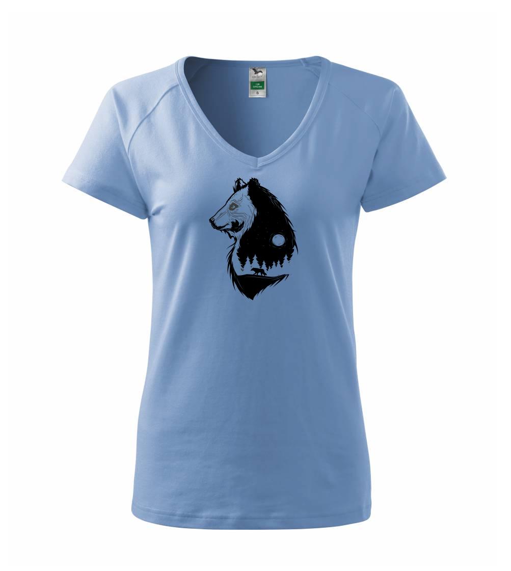 Triko nebo zástěra pro milovníka divoké přírody a přežití v přírodě. Medvěd nebo vlk, oba dva jsou na triku.