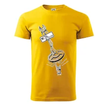 Pánské tričko s krátkým rukávem vyšší gramáže. Módní, přiléhavý střih s bočními švy. Úzký lem průkrčníku ze žebrového úpletu s přídavkem 5 % elastanu. Vnitřní část zadního průkrčníku začištěna páskou. Zpevněný ramenní šev.