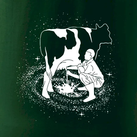 Mléko nevzniká v obchodě v regále. Nejdřív se musí od šikovných zemědělců a farmářů na regál dostat. Pokud máš vztah k zemědělským zvířatům a víš třeba, jak podojit krávu, tak neváhej a kupuj triko s krávou.