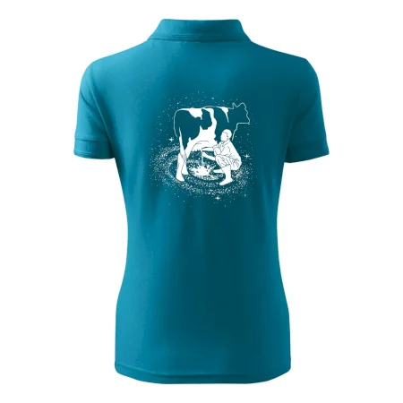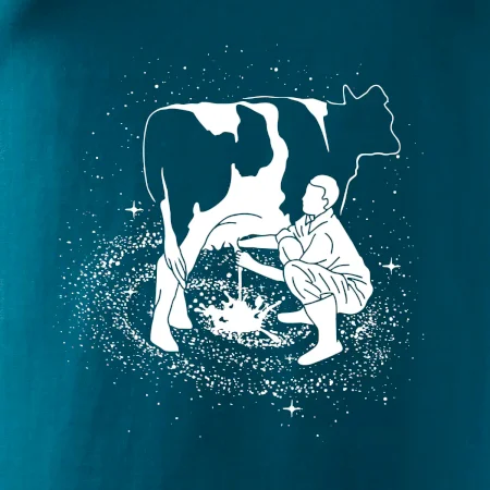 Mléko nevzniká v obchodě v regále. Nejdřív se musí od šikovných zemědělců a farmářů na regál dostat. Pokud máš vztah k zemědělským zvířatům a víš třeba, jak podojit krávu, tak neváhej a kupuj triko s krávou.