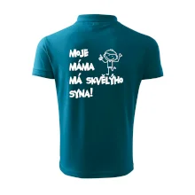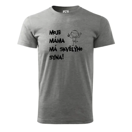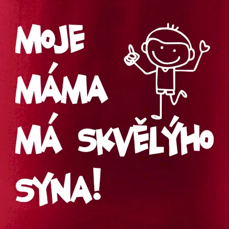 Triko pro kluka s nápisem "Moje máma má skvělýho syna". Ukaž, že jsi taky fajn syn. Vtipné rodinné triko pro syna.