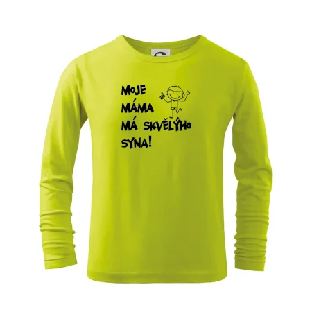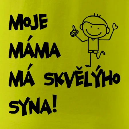 Triko pro kluka s nápisem "Moje máma má skvělýho syna". Ukaž, že jsi taky fajn syn. Vtipné rodinné triko pro syna.