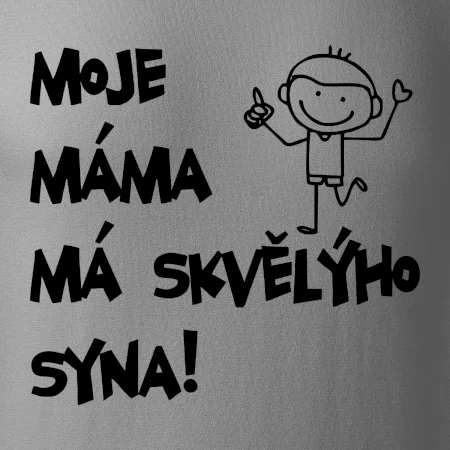 Triko pro kluka s nápisem "Moje máma má skvělýho syna". Ukaž, že jsi taky fajn syn. Vtipné rodinné triko pro syna.