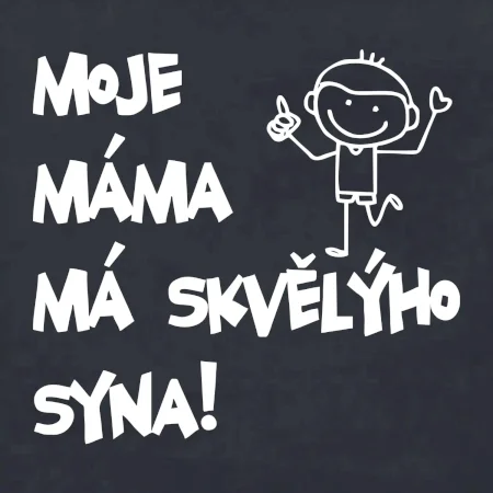Triko pro kluka s nápisem "Moje máma má skvělýho syna". Ukaž, že jsi taky fajn syn. Vtipné rodinné triko pro syna.