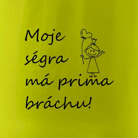 Triko pro bráchu s nápisem "Moje ségra má prima bráchu". Ukaž, že jsi taky fajn brácha. Vtipné sourozenecké triko pro bratra.