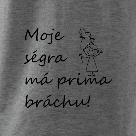 Triko pro bráchu s nápisem "Moje ségra má prima bráchu". Ukaž, že jsi taky fajn brácha. Vtipné sourozenecké triko pro bratra.