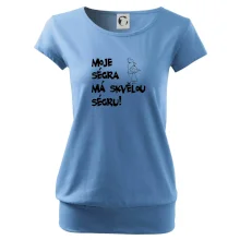 Triko pro ségru s nápisem "Moje ségra má skvělou ségru". Ukaž, že jsi taky fajn sourozenec. Vtipné rodinné triko pro sourozence.