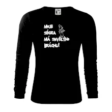 Triko pro bráchu s nápisem "Moje ségra má skvělýho bráchu". Ukaž, že jsi taky fajn sourozenec.