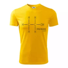 Na tričku skvělá připomínka toho, že každá party má svou cenu. Pro chemiky, barmany, studenty i rodiče — každý už někdy testoval jeho účinky na vlastní kůži.