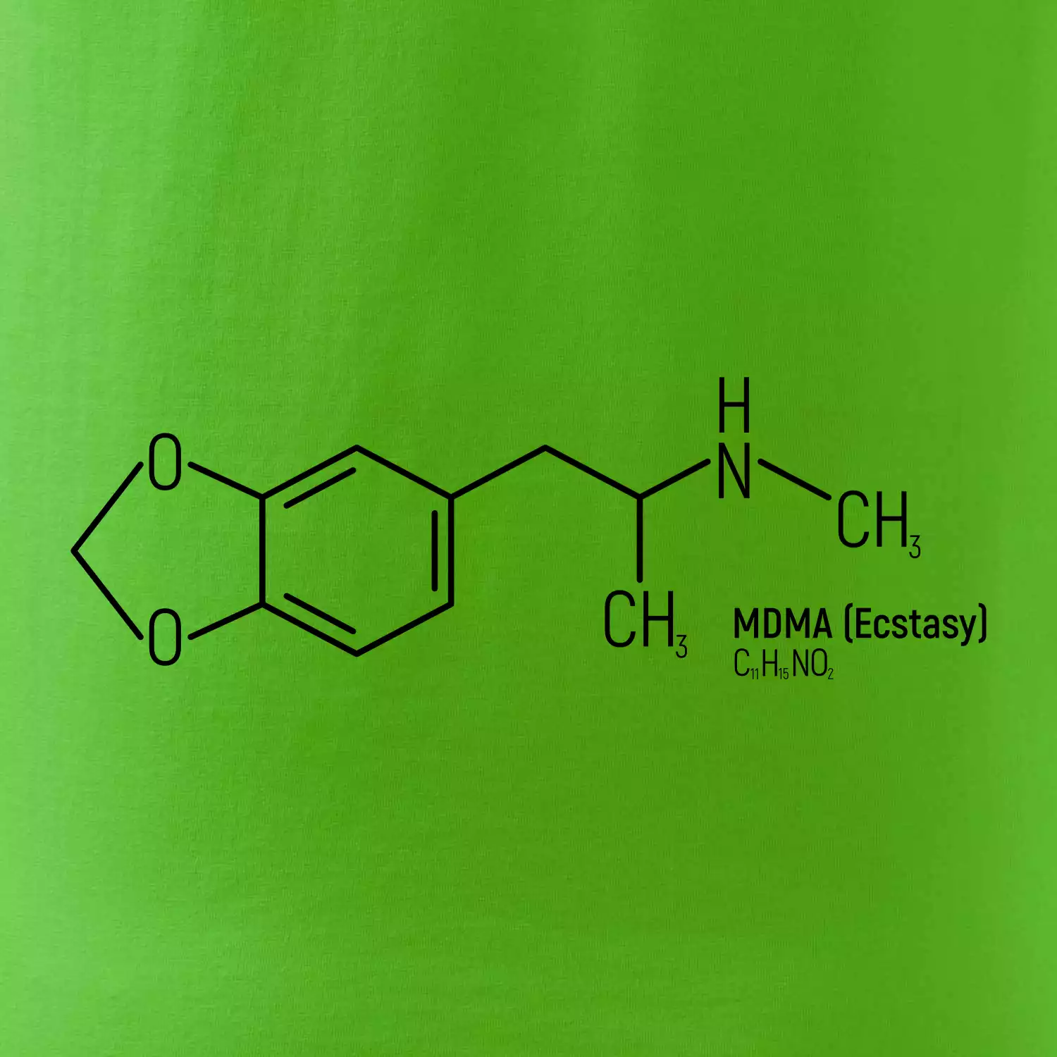 MDMA – vzorec, co říká mozku: "Dneska je všechno super!" Úzkosti pryč, deprese na dovolené, láska ke všem včetně barmana i dlaždiček na záchodě.