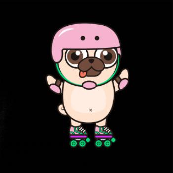 Mops a kolečkové brusle