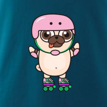 Mops a kolečkové brusle