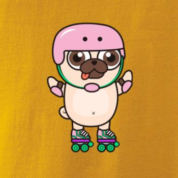 Mops a kolečkové brusle