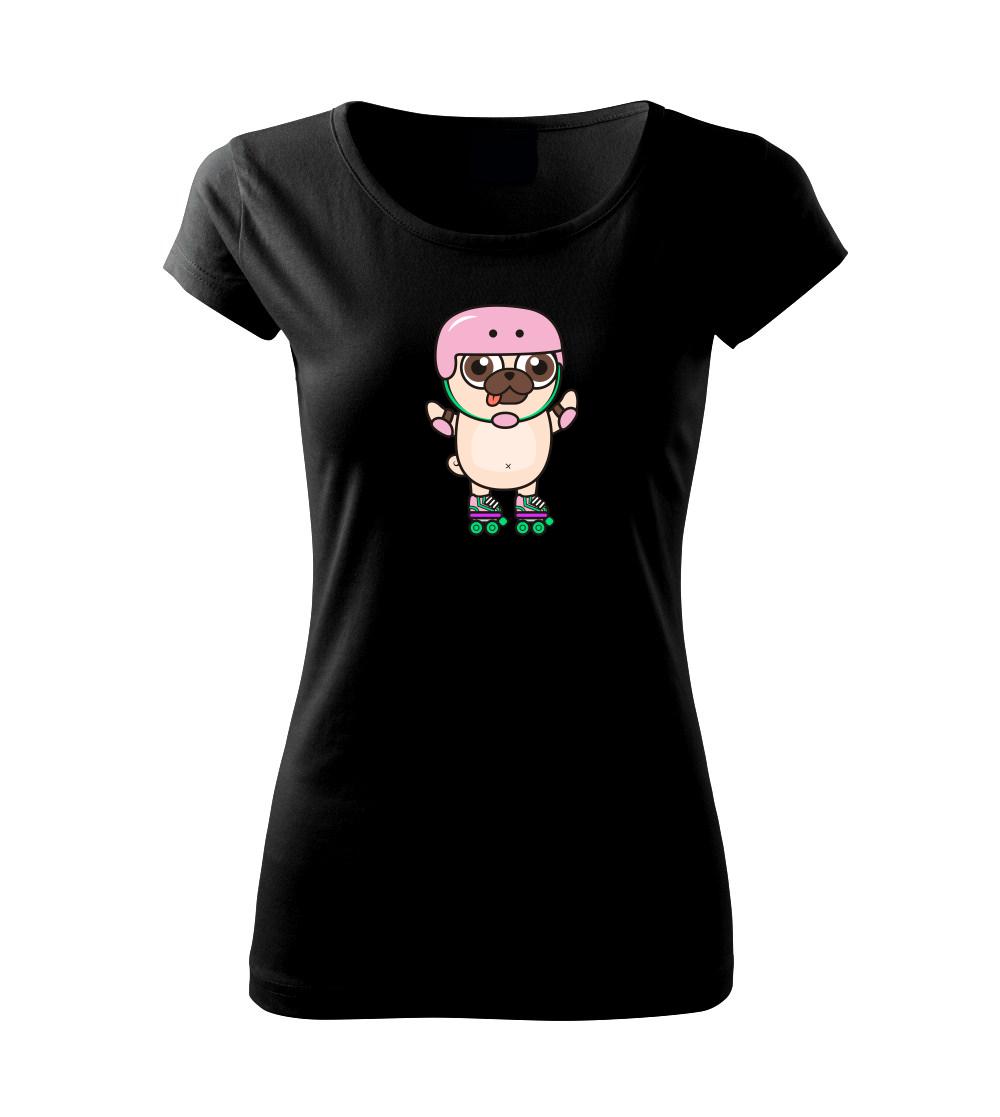 Mops a kolečkové brusle