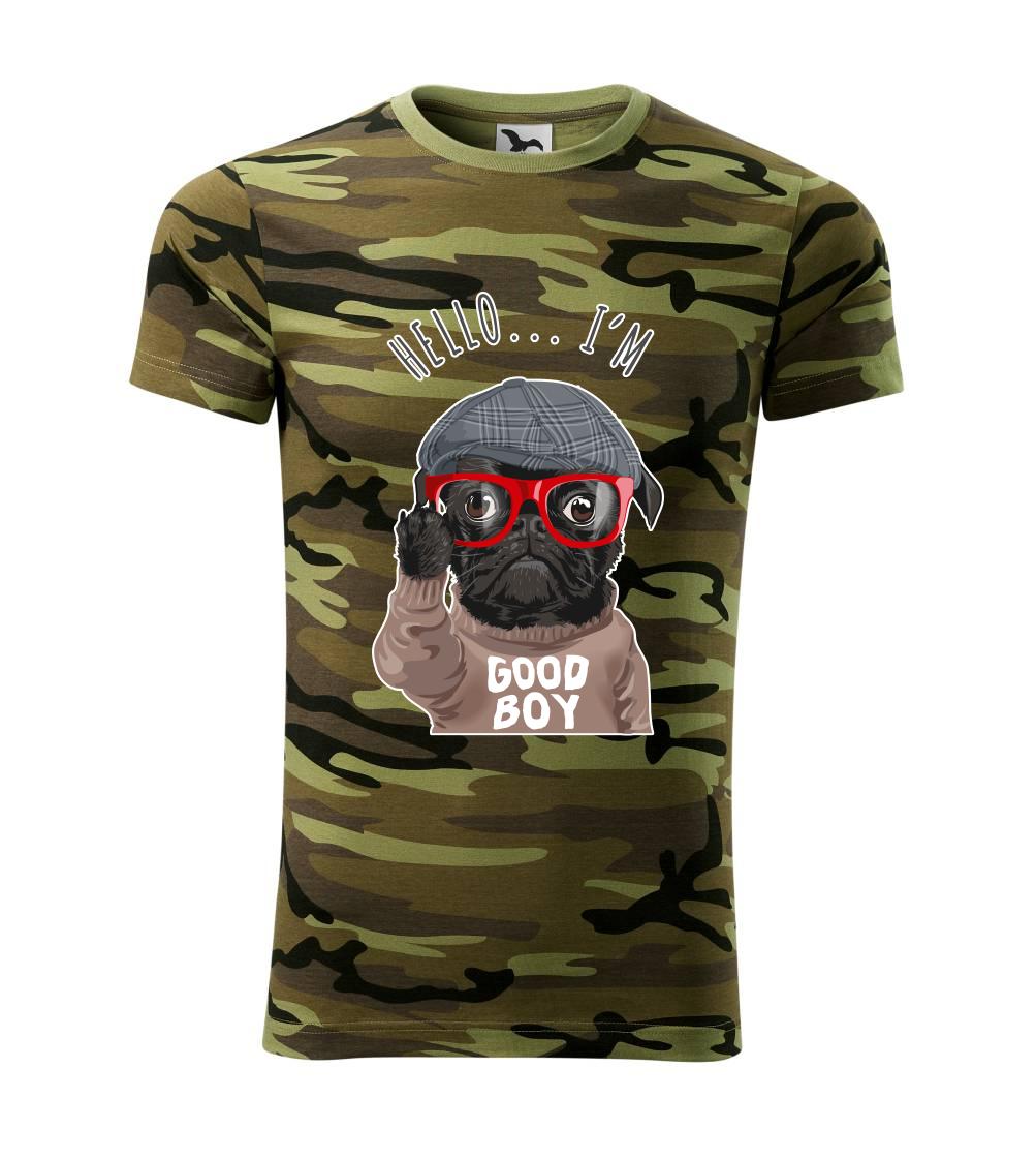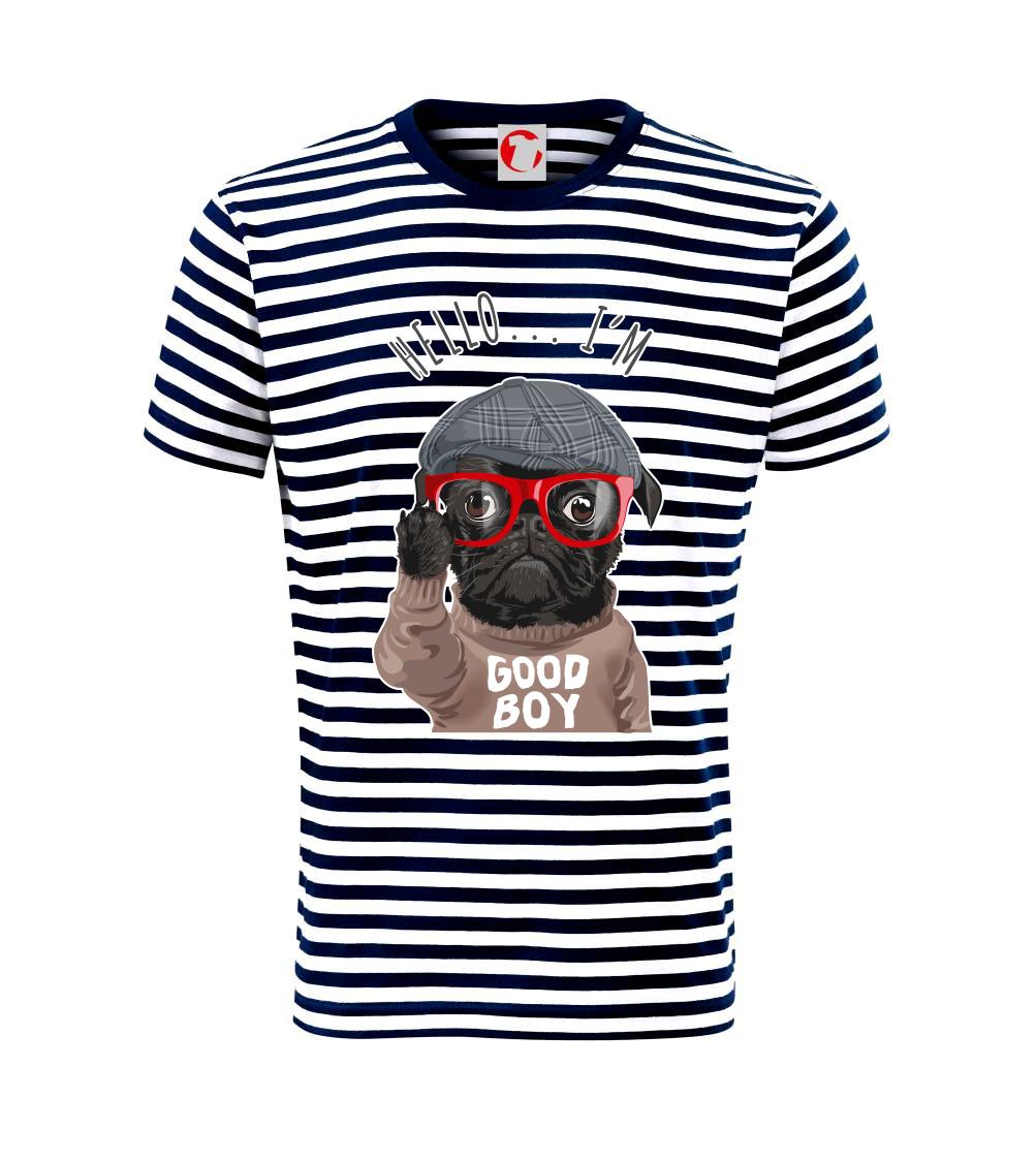 Skvělé triko pro všechny milovníky mopsů. Znáš někoho kdo má jako psího mazlíčka mopse a potřebuješ pro něj dárek? Skvělý dárek pro páníčka mopse je toto triko nebo klidně taška nebo polštář. Triko pro pejskaře, kteří mají rádi mopse. Tričko se psem je vhodný dárek pro pejskaře. Triko s mopsem a nápisem "Hello I'm good boy".