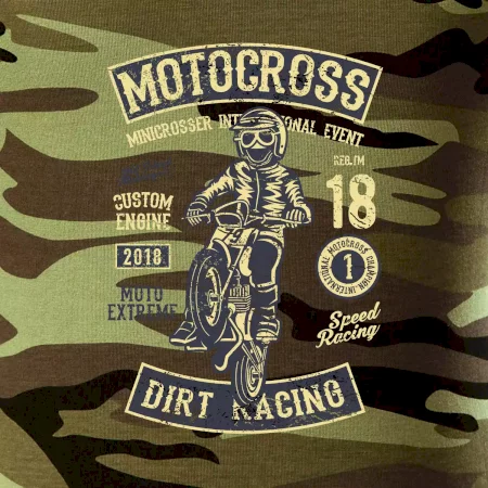 Tričko střední gramáže v barvách camouflage. Střih s bočními švy. Lem průkrčníku ze žebrového úpletu s přídavkem 5 % elastanu. Vnitřní část zadního průkrčníku začištěna páskou v barvě camouflage.